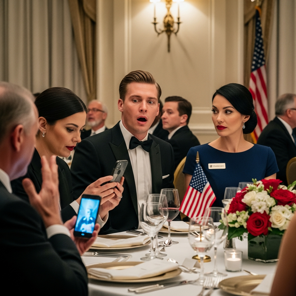 The laughter came in waves that night—bankers, venture capitalists, and family acquaintances leaning closer as he performed.