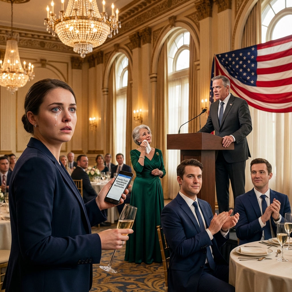 He stood under a crystal chandelier he’d insisted was “classy but not too flashy,” raised his glass, and said, in front of two hundred people: