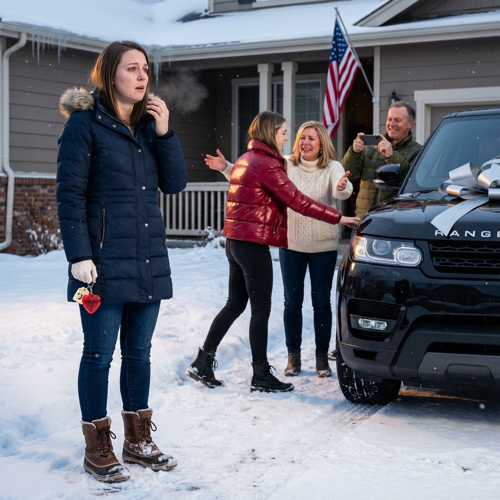 The entire family trooped out into the cold December air, and there it sat in the driveway like a monument to favoritism—a gleaming black Range Rover with all the luxury trimmings, the enormous silver bow catching the weak winter sunlight.