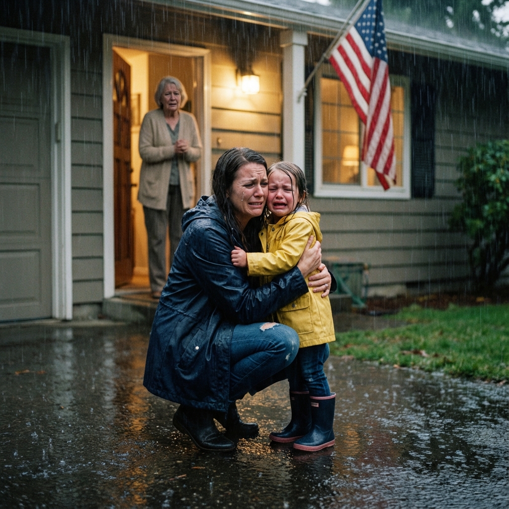 By the time I reached our street, the rain hadn’t eased—it was drowning everything. My mother’s porch light glowed like a lighthouse.