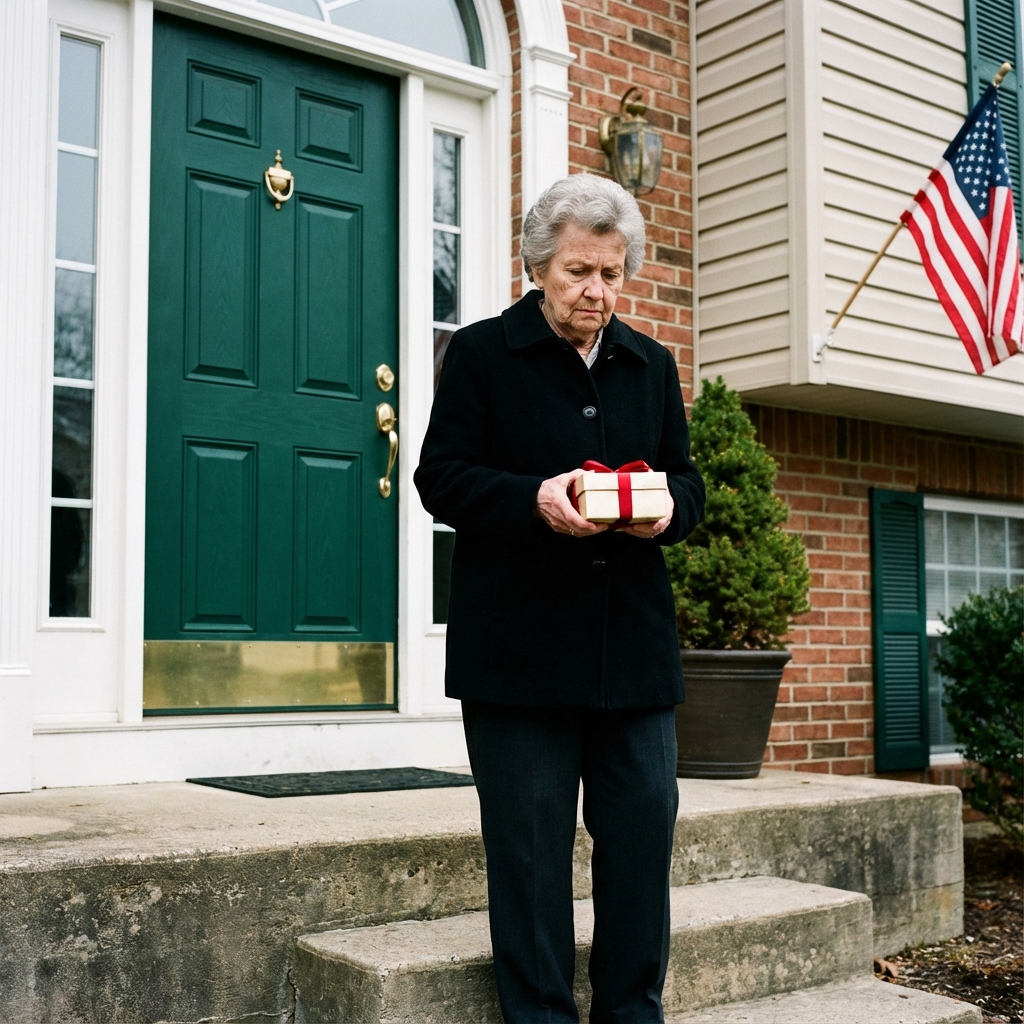 We both looked at the doorbell camera, that little black dot in the corner. It blinked its silent, indifferent eye. I imagined Linda standing there, placing the gift down with her careful hands, then turning around and leaving before anyone could open the door.