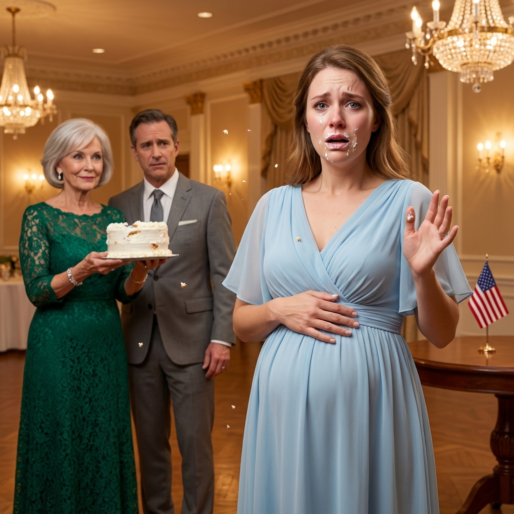 His eyes locked on me—his daughter, pregnant, covered in cake, trembling.