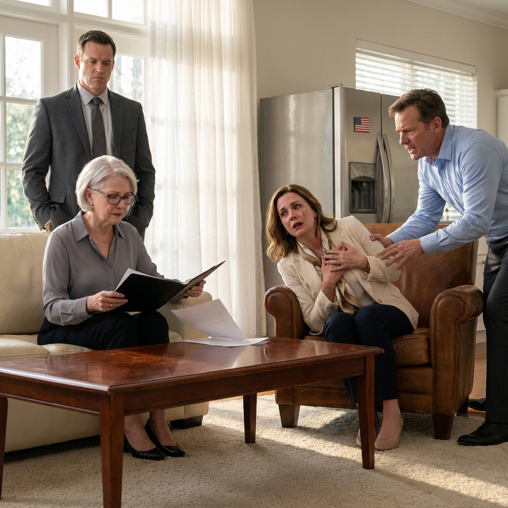 The man in the suit introduced himself as attorney Richard Sterling, a specialist in family law and estates. He extended his hand with a cold, calculated courtesy. I shook it, not yet understanding what was happening, although something in the pit of my stomach warned me that this was not a social call. Harper made herself comfortable on my sofa without waiting for an invitation. She crossed her legs, placed her designer handbag on the coffee table, and pulled out her phone as if she were in any random waiting room. Caleb walked straight to the kitchen and came back with a glass of water. He did not ask permission. He did not ask if he could. He simply did it, as if this were still his house, as if I were invisible. I remained standing in the middle of my own living room, feeling the air grow heavier with every second that passed.